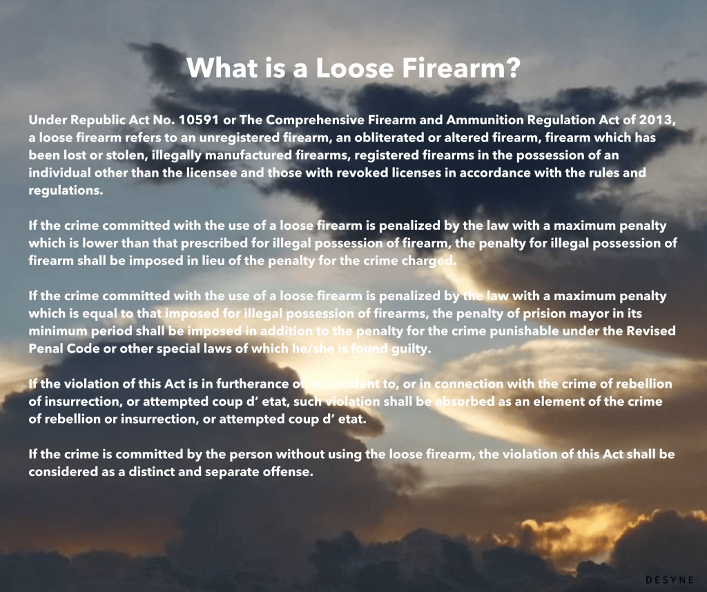Causing Dela Cruz Bernal Law Office has a team of experienced criminal law practitioners who can give legal advice and clarifications about criminal law issues like liabilities and defenses in illegal possession of firearm cases. To avail of free legal consultation, email us at attybaciii@gmail.com or proceed to the Main Menu for for free legal advice.