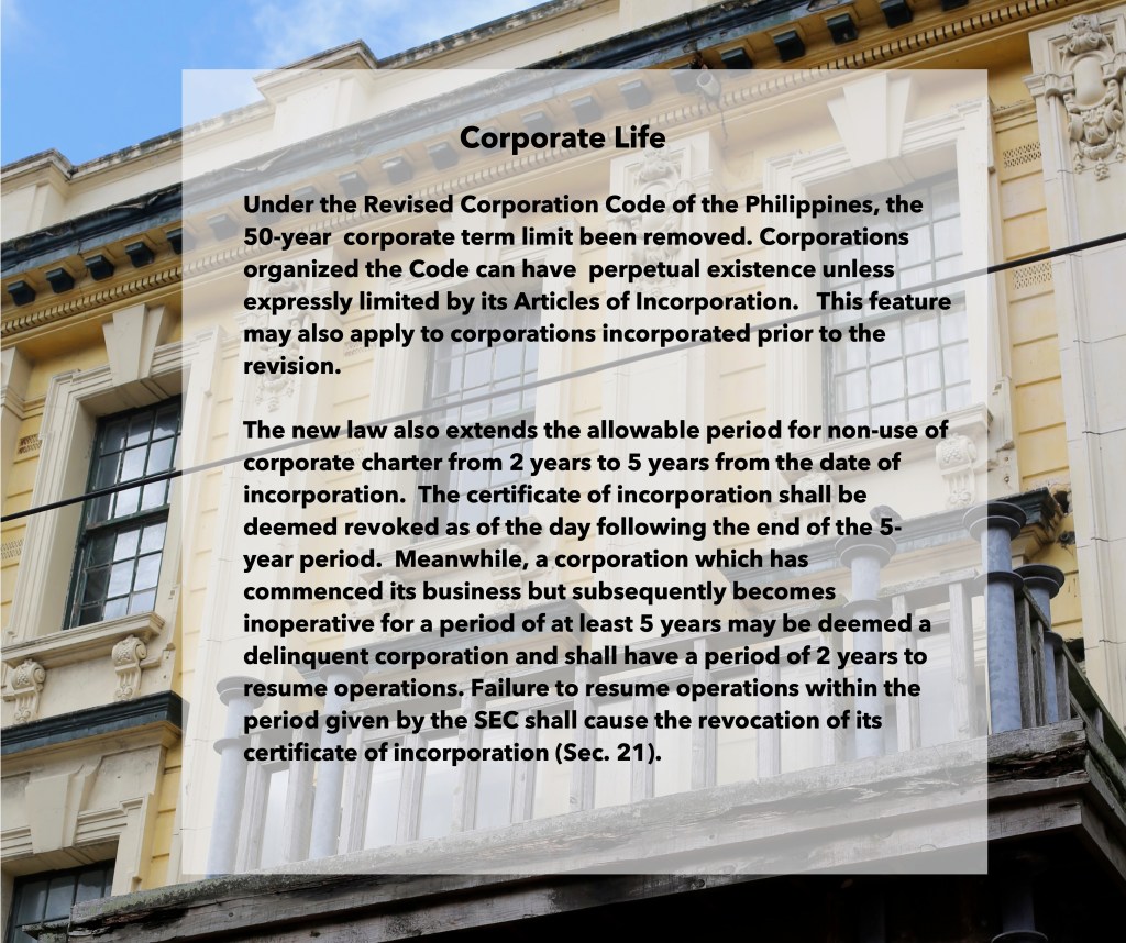 Revisions of the Corporation Code of the Philippines (Part 2): Corporate Life