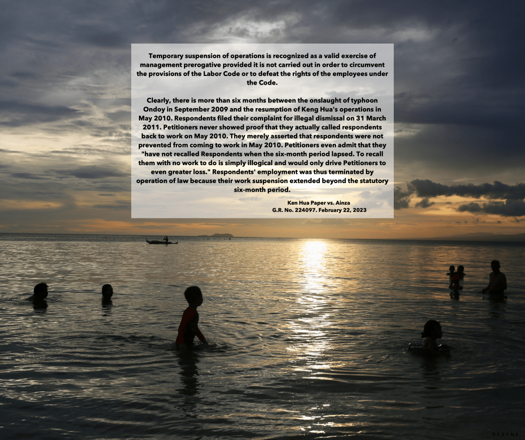 The Temporary Suspension of Operations is recognized as a valid exercise of management as a general rule