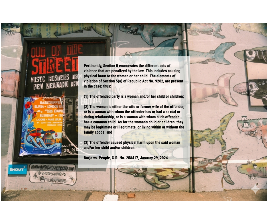 What are the elements of violation of Section 5(a) of Republic Act No. 9262 Causing Dela Cruz Law Office is a law firm based in Iloilo City. #ILOILO #IloiloCity #RA9262 Share this: Share on X (Opens in new window) X Share on Facebook (Opens in new window) Facebook Like Loading... Leave a comment Cancel reply Δ