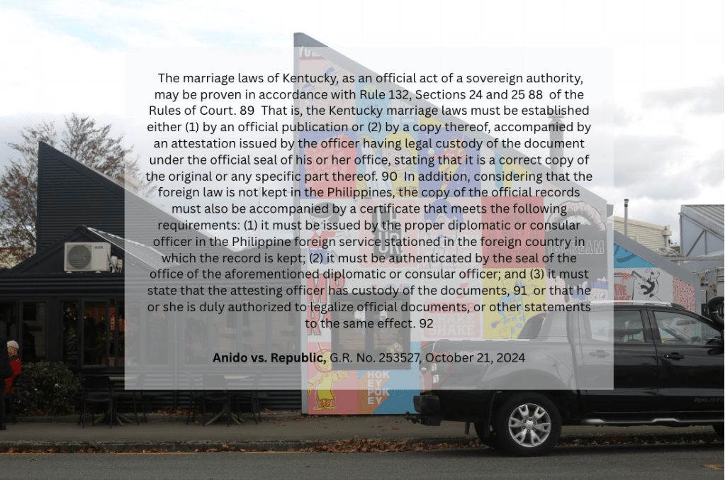 How can a foreign law be proven in the Philippine jurisdiction – sample. Causing Dela Cruz Law Office is a marital law practitioner based in Iloilo City. #causingdelacruzlawoffice #IloiloCity #ILOILO #notarypublic Share this: Share on X (Opens in new window) X Share on Facebook (Opens in new window) Facebook Like Loading... Leave a comment Cancel reply Δ