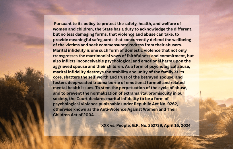 Causing Dela Cruz Law Office is a family law practitioner based in Iloilo City which litigates Violence against Women and their Children Law (VAWC) cases.
