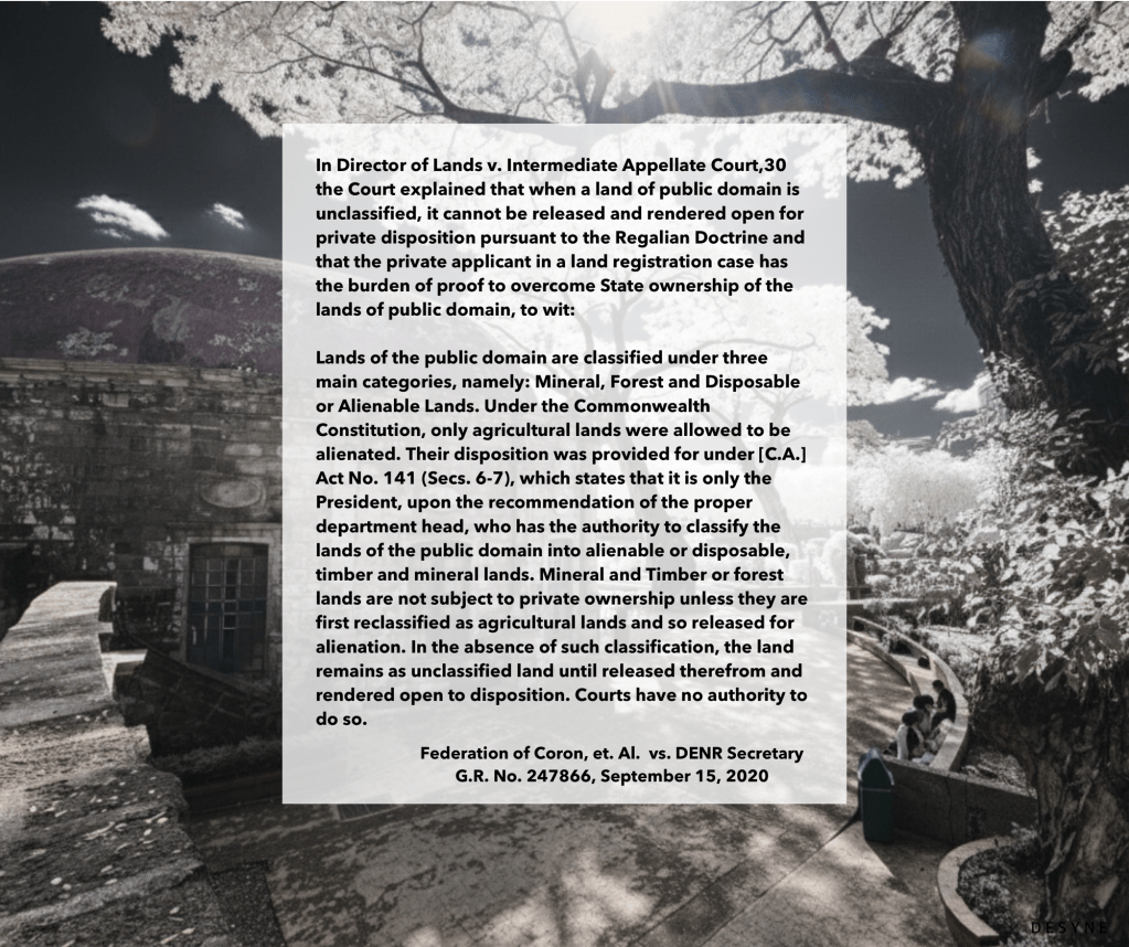 It is only the President, upon the recommendation of the proper department ead, who has the authority to classify the lands of the public domain into alienable or disposable, timber and mineral lands. Causing Dela Cruz Law Office is a law office based in Iloilo City. Share this: Share on X (Opens in new window) X Share on Facebook (Opens in new window) Facebook Like Loading... Leave a comment Cancel reply Δ