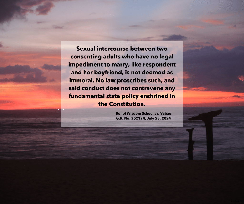 Sexual Intercourse between two consenting adults who have no legal impediment to marry is not deemed immoral Causing Dela Cruz Law Office is a labor law practitioner based in Iloilo City, Western Visayas. May 3, 2025 0