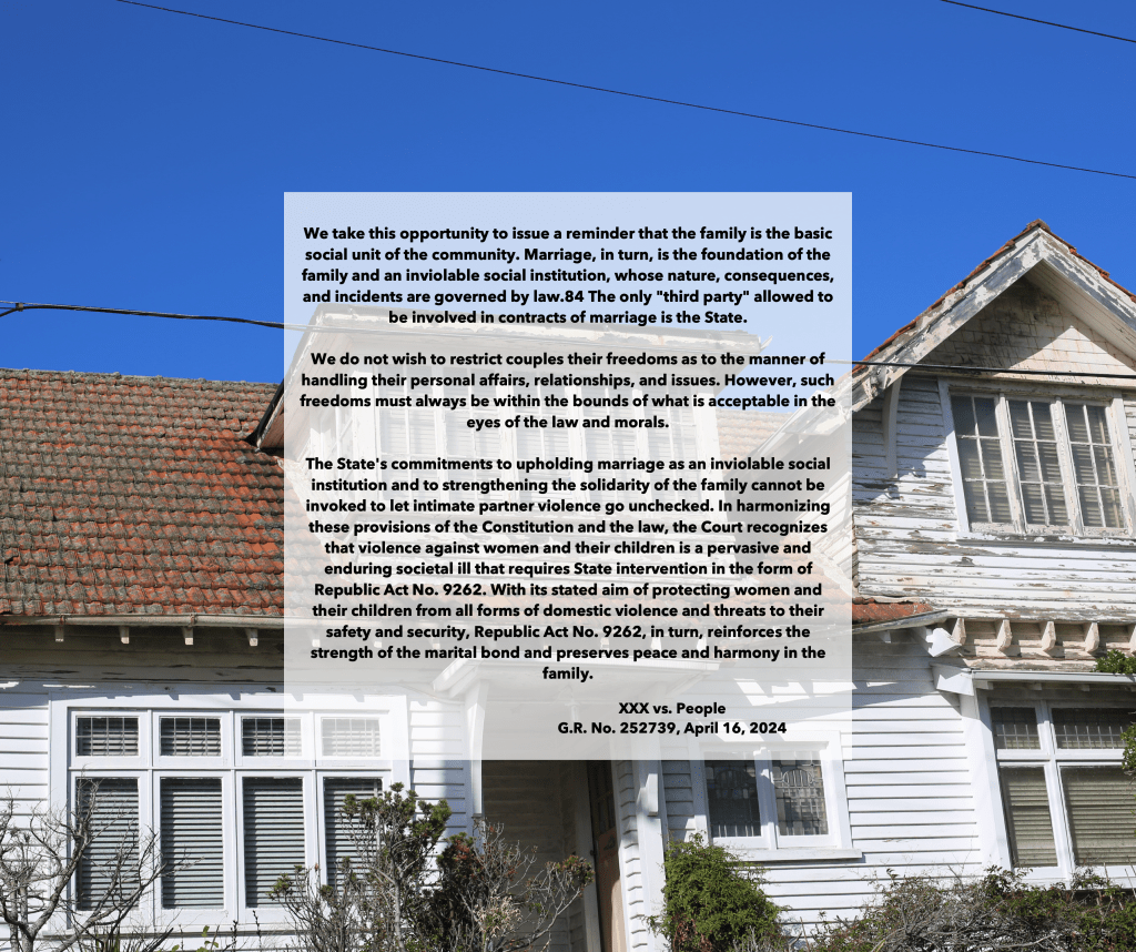 The State’s commitment to upholding marriage as an inviolable social institution and to strengthen the solidarity of the family cannot be invoked to let intimate partner violence go unchecked